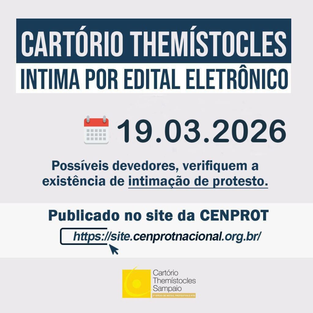 Atenção, devedores! A intimação de protesto por edital é feita por meio de edital eletrônico. Verifiquem no site da CENPROT.